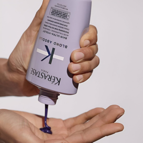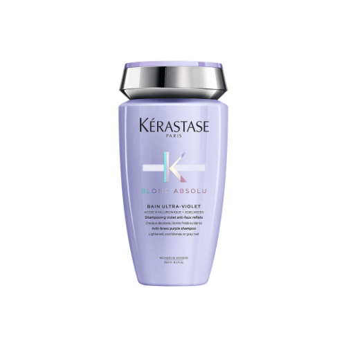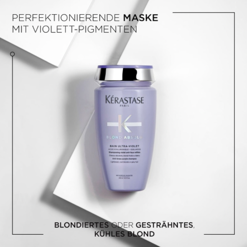 Das Kérastase Blond Absolu Bain Ultra-Violet ist ein intensiv neutralisierendes Shampoo, das unerwünschte Gelb- und Orangetöne in blondiertem, aufgehelltem oder grauem Haar sofort ausgleicht. Die violetten Pigmente wirken effektiv gegen warme Untertöne und verleihen dem Haar einen kühlen, klaren Blondton mit strahlendem Glanz.