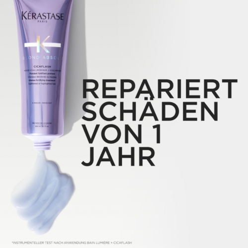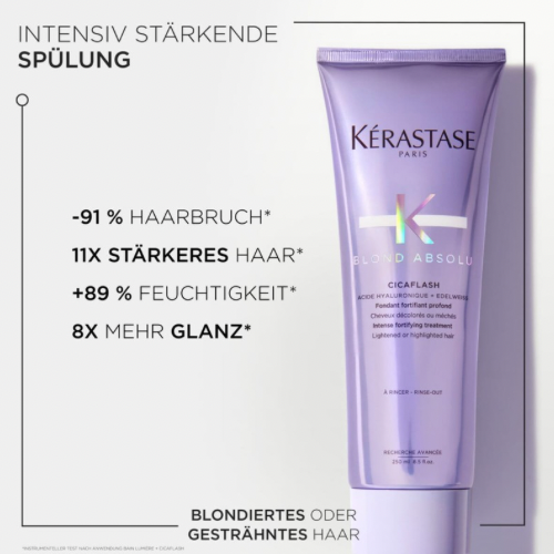 Das Kérastase Blond Absolu Cicaflash ist ein intensiv pflegender Conditioner, der die regenerierenden Eigenschaften einer Maske mit der leichten Textur einer Milch vereint. Ideal für blondiertes, aufgehelltes oder gesträhntes Haar, das nach Feuchtigkeit, Geschmeidigkeit und Schutz verlangt.