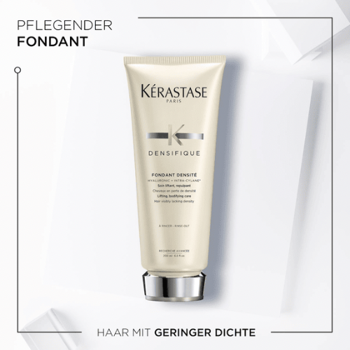 Der Kérastase Densifique Fondant Densité ist ein aufbauender Conditioner, der feinem oder kraftlosem Haar sofort mehr Dichte, Volumen und Stärke verleiht. Mit Hyaluronsäure, Stemoxydine und Gluco-Peptiden stärkt er die Haarfaser, spendet Feuchtigkeit und sorgt für geschmeidiges, volleres Haar mit mehr Fülle. Ideal für feines, plattes oder dünner werdendes Haar.