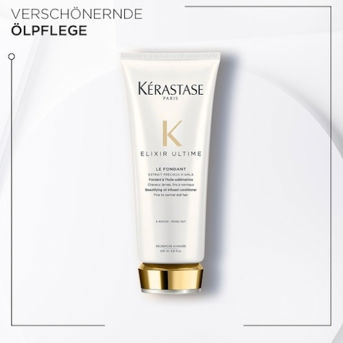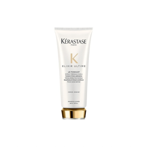 Der Kérastase Fondant Elixir Ultime ist ein glanzverleihender Conditioner, der das Haar intensiv pflegt, ohne es zu beschweren. Angereichert mit einer luxuriösen Mischung aus Marula-, Camelia- und Arganöl, sorgt er für seidige Geschmeidigkeit, leichte Kämmbarkeit und strahlenden Glanz. Ideal für normales bis feines Haar, das mehr Leuchtkraft und Pflege braucht.