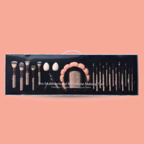 Pro Multifunctional Rhinestone Makeup Brush Set Bronze