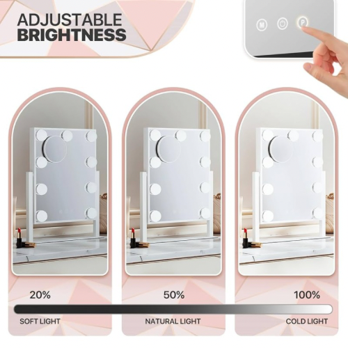 Der Smart LED Schminkspiegel in elegantem Weiß vereint Stil und Funktionalität für dein perfektes Make-up-Erlebnis. Mit 8 dimmbaren LED-Leuchten und Touch Steuerung bietet er optimale Beleuchtung für jeden Look von Tages bis Abend Make up. Der abnehmbare 10 fach-Vergrößerungsspiegel sorgt für höchste Präzision beim Schminken und Augenbrauenstyling. Modernes Design, stabile Halterung und klarer Spiegel dein Must have für den Schminktisch oder das Beauty-Studio.
