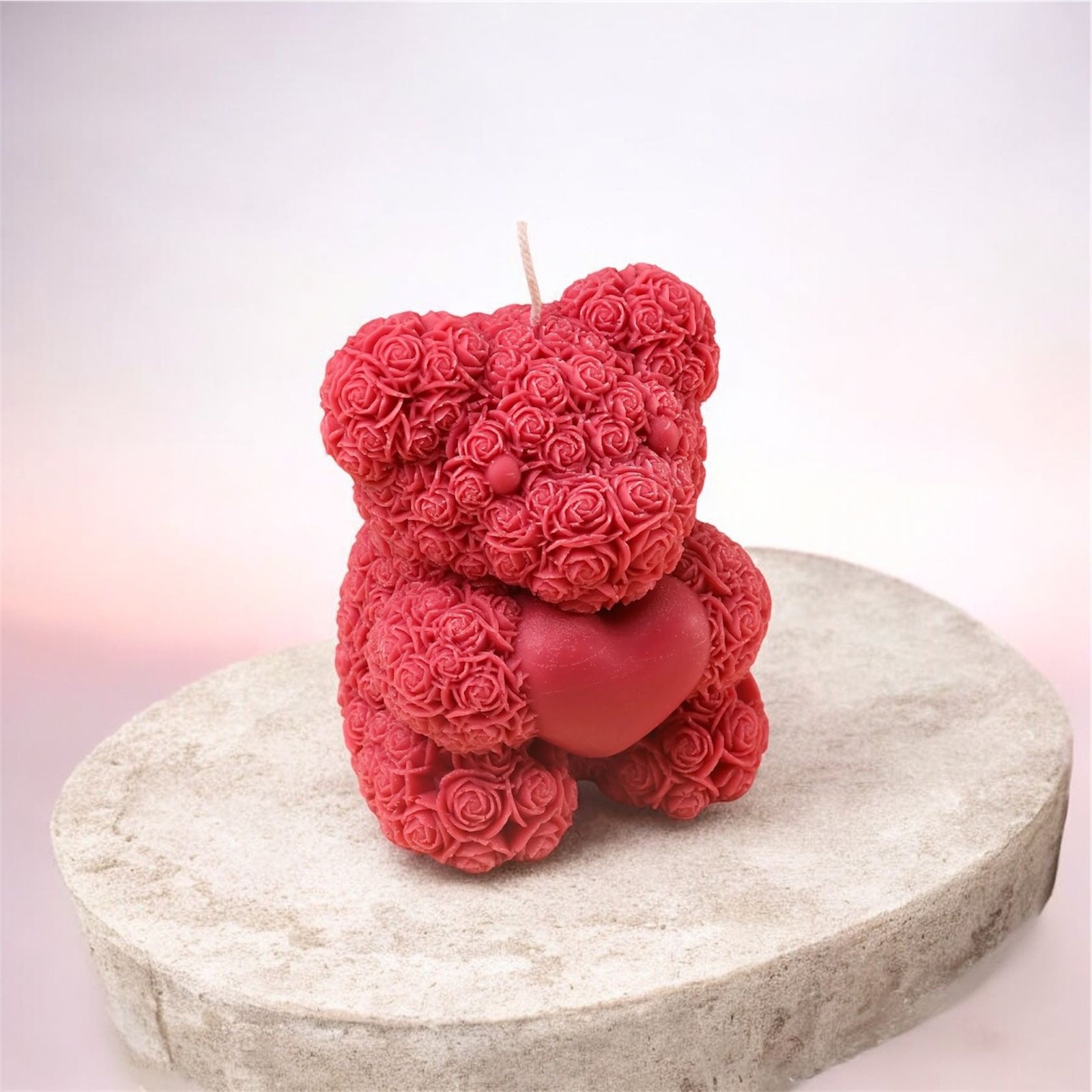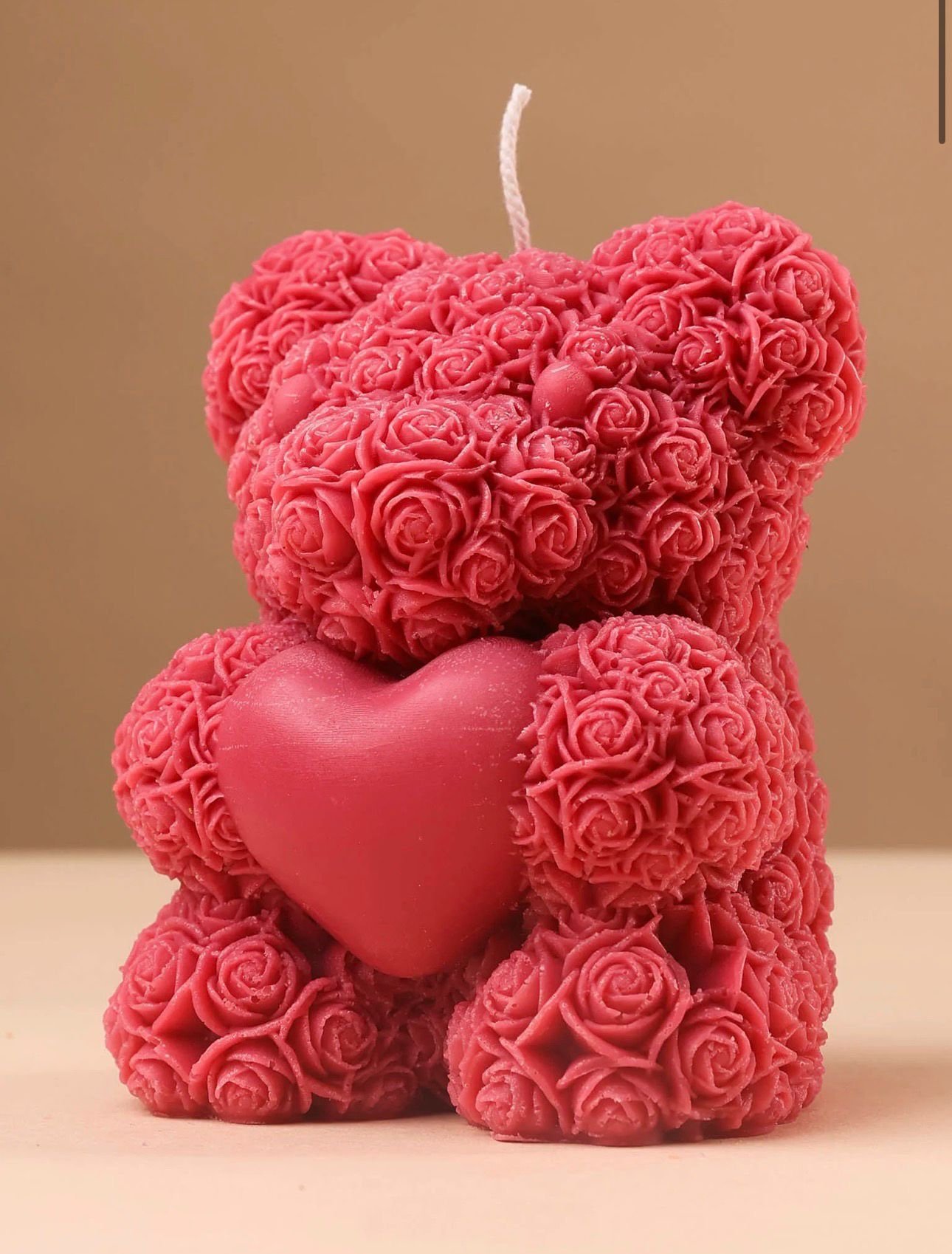 Elegante Rosenbär-Kerze in strahlendem Rot ein stilvolles Geschenk und wunderschöne Dekoration für jeden Anlass. Handgefertigt mit viel Liebe zum Detail, sorgt sie für eine romantische und gemütliche Atmosphäre. Perfekt für Hochzeiten, Jubiläen oder als besonderes Mitbringsel.